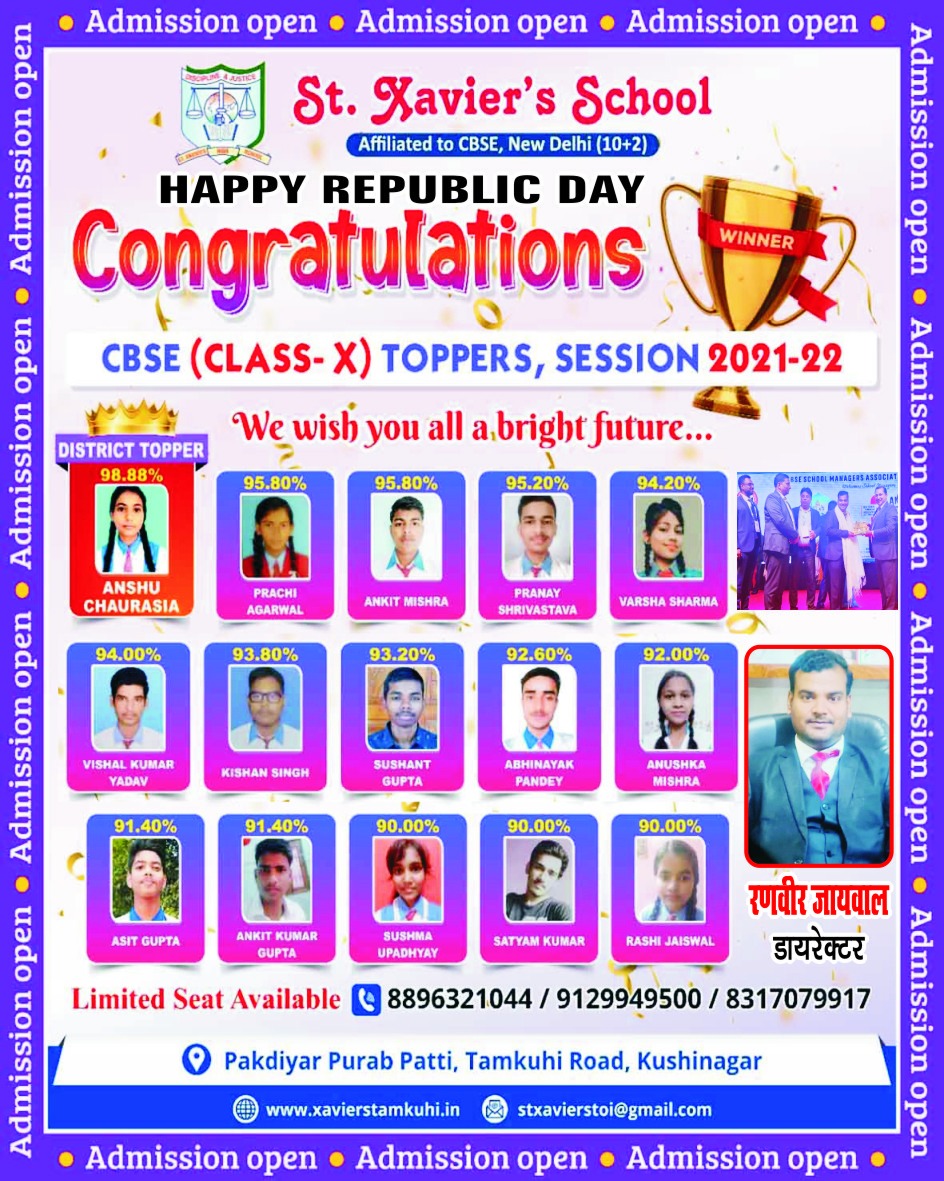 I am honoured and feel very privilege to be the Principal of St. Xavier's School, Tamkuhi, Kushinagar. I am always excited and look forward to working with our students, staff and parents to make St.xavier's School, the best school of the district …………